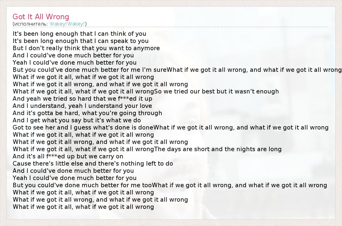 А как ты думаешь, о чем песня "Got It All Wrong" ?