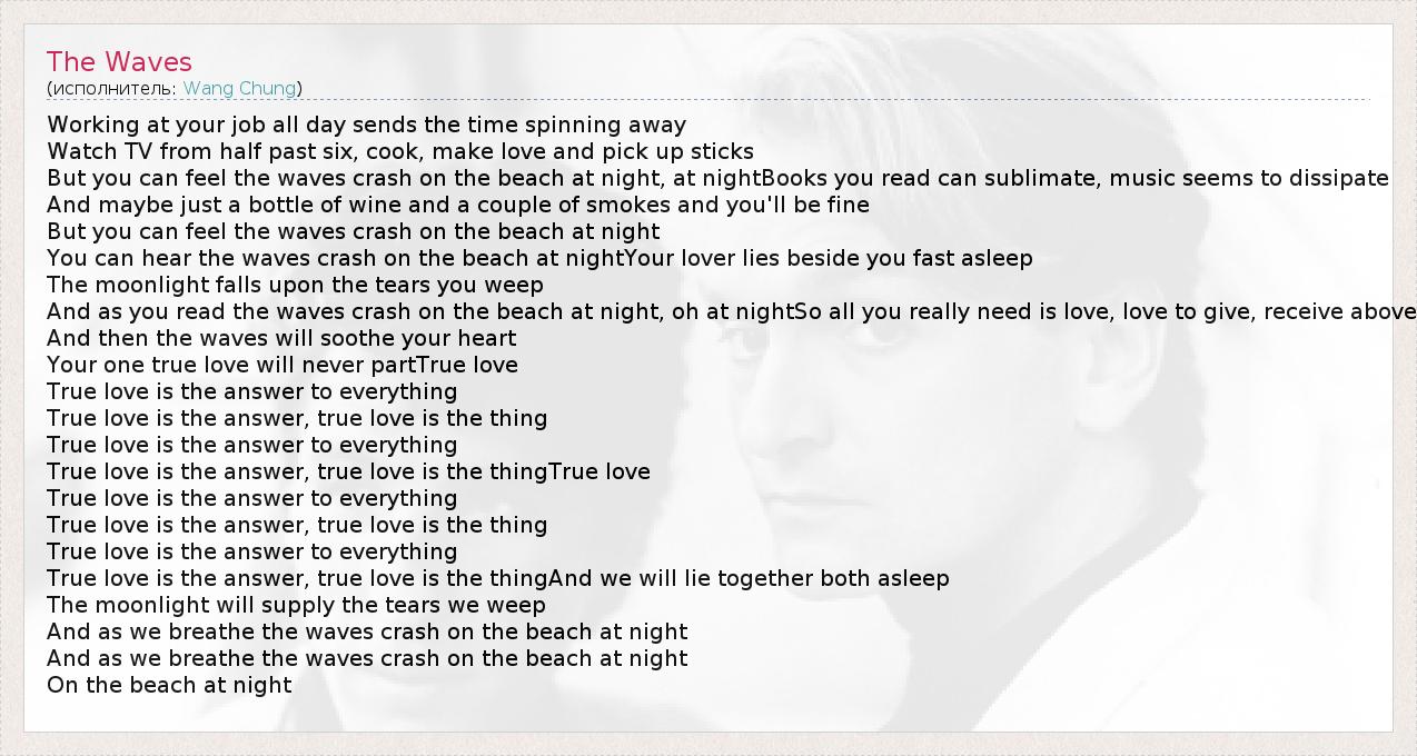 And as you read the waves crash on the beach at night, oh at nightSo all you really need is love, love to give, receive above