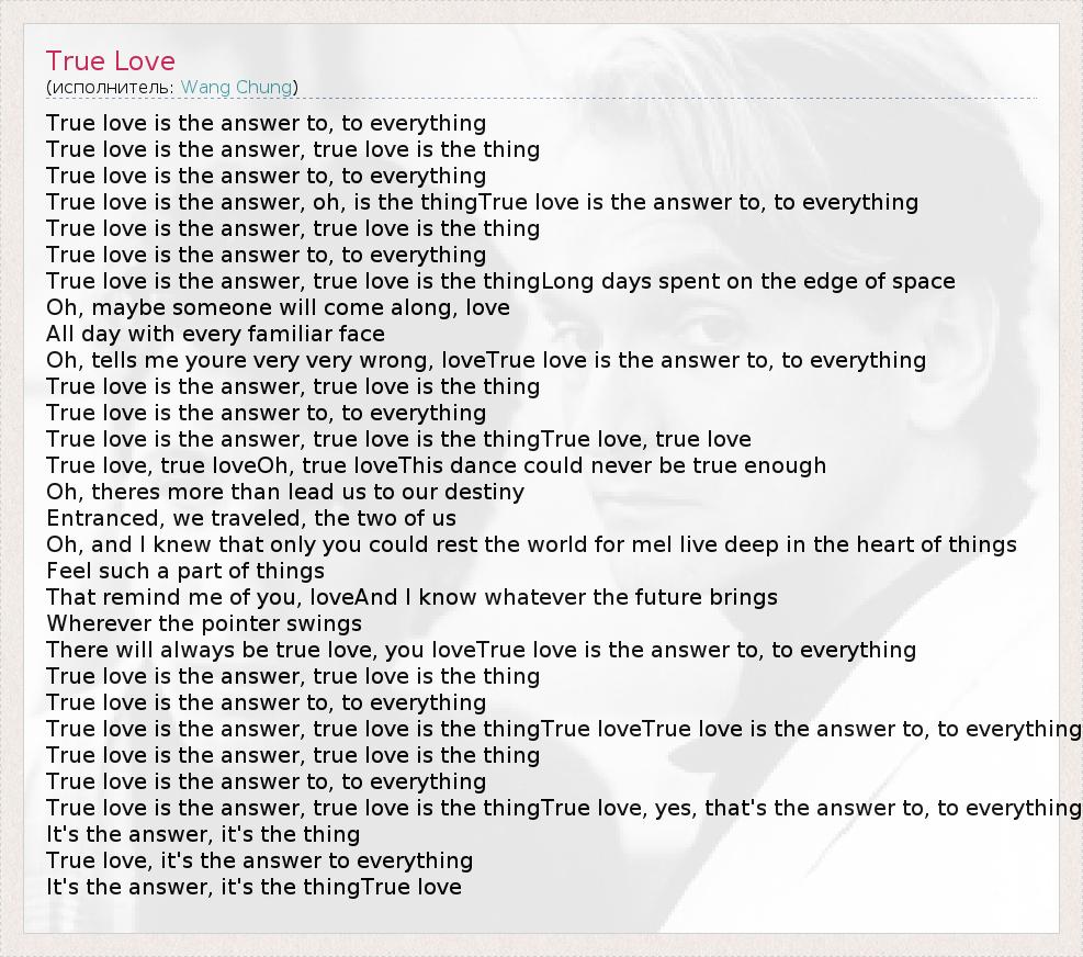 True love is the answer, true love is the thingTrue love, yes, that's the answer to, to everything