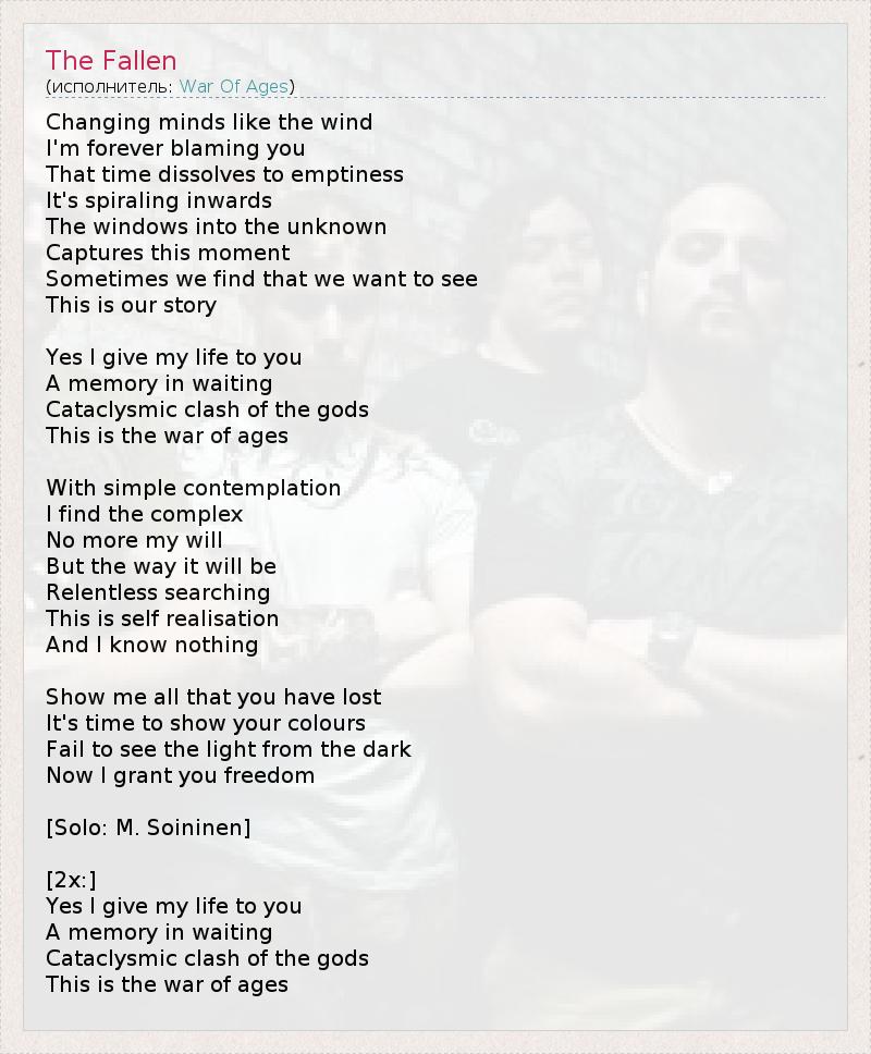Это интересно:После развала Point Zero летом 2002-го оставшиеся члены команды быстро сколотили новый хард-кор коллектив War of Ages. Главными инициаторами создания новой группы были братья Гэмпы – Лирой и Алекс. В состав новой команды вошел бывший член христианской блэк-кор группы Mortal Treason – бас-гитарист Ти-Джей Элфорд. В 2003-м War of Ages сделали независимую запись Unite Us All EP в родном городе Эри (штат Пенсильвания),... продолжение