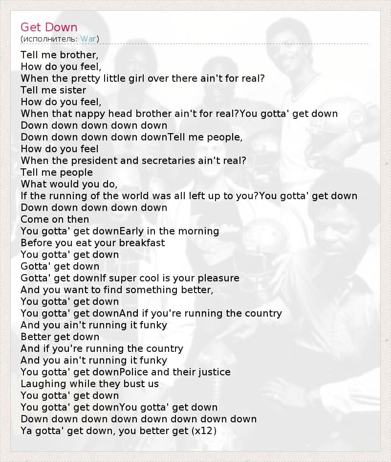 Это интересно:War - была одной из самых эклектичных групп, свободно объединяющей соул, латино-американскую музыку, джаз, блюз и рэггей.Их музыка почти всегда имела солнечный, непринужденный звук, символизирующий их южные, Калифорнийские корни.Гитарист Говард Скотт и барабанщик Гарольд Браун основали группу в 1962, посещая среднюю школу в области Compton, а три года спустя, к ним присоеденились играющий... продолжение