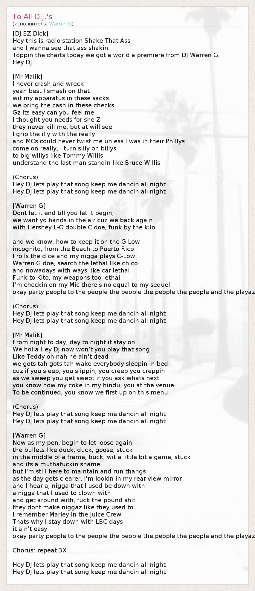 Hey DJ lets play that song keep me dancin all night