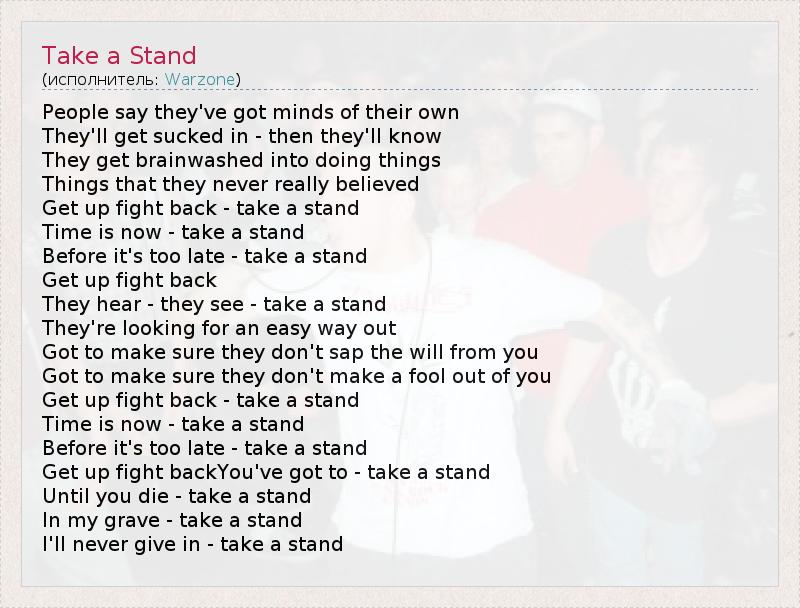 А как ты думаешь, о чем песня "Take a Stand" ?