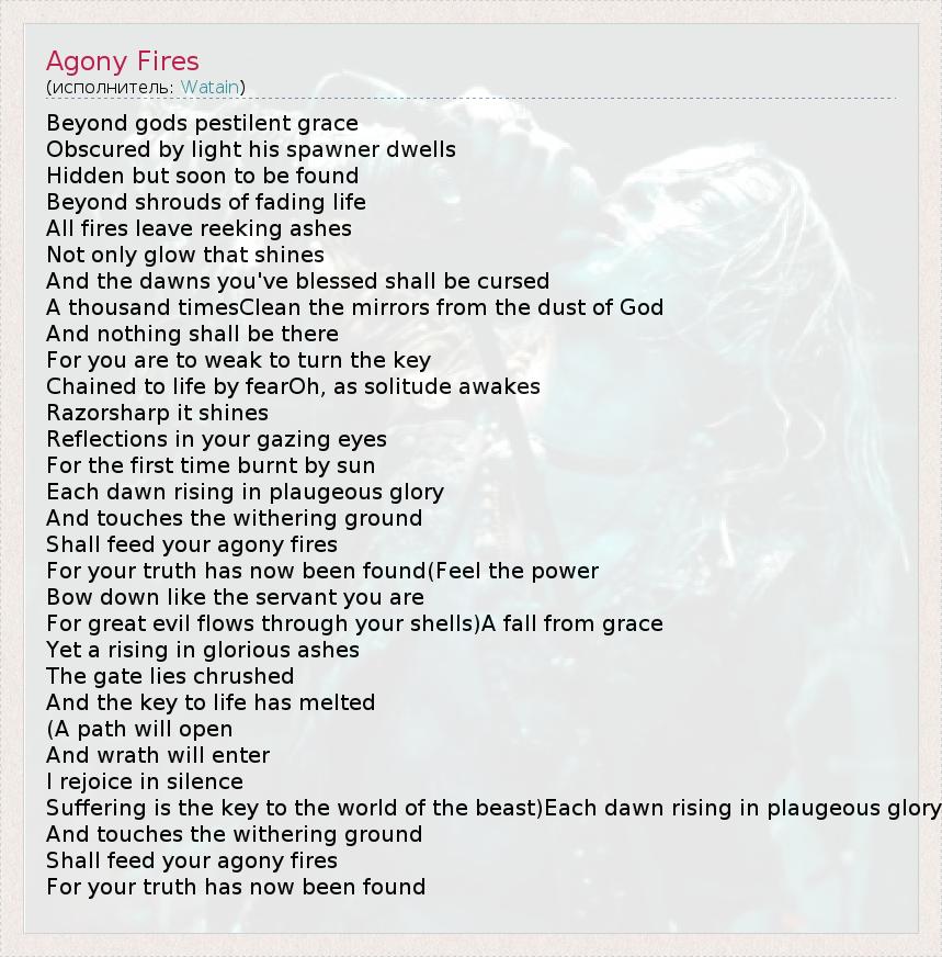 А как ты думаешь, о чем песня "Agony Fires" ?