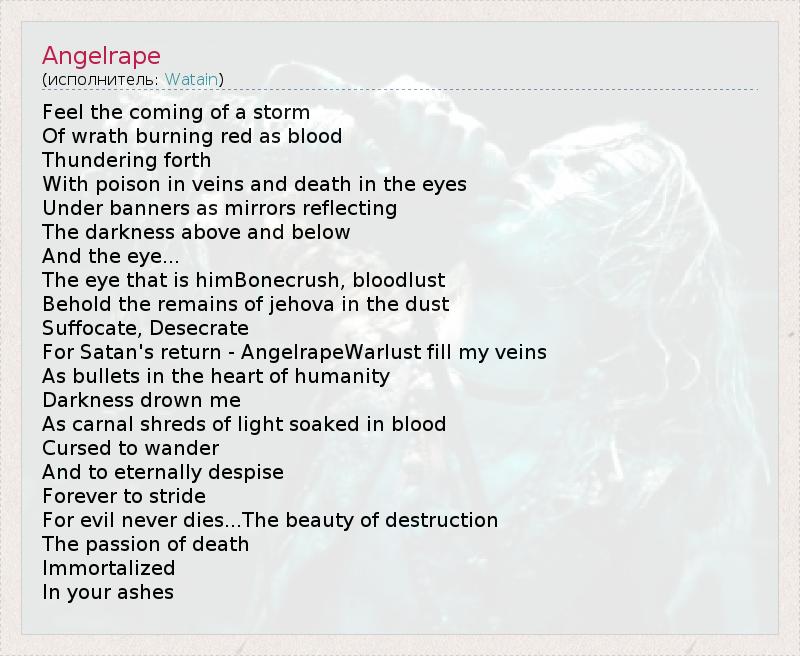Это интересно:Шведская группа «Watain», позаимствовавшая свое название из песни «Von», начала свою сатанинскую деятельность в 1998 году (Уппсала, Швеция). Основали новую единицу бывшие участники «Bloodsoil» Эрик Даниэльссон (бас, вокал) и Си Блом (гитара), объединившиеся с ударником Ки Джонссоном и гитаристом Пелле Форсбергом.Первое же демо, «Go Fuck Your Jewish God», включавшее... продолжение