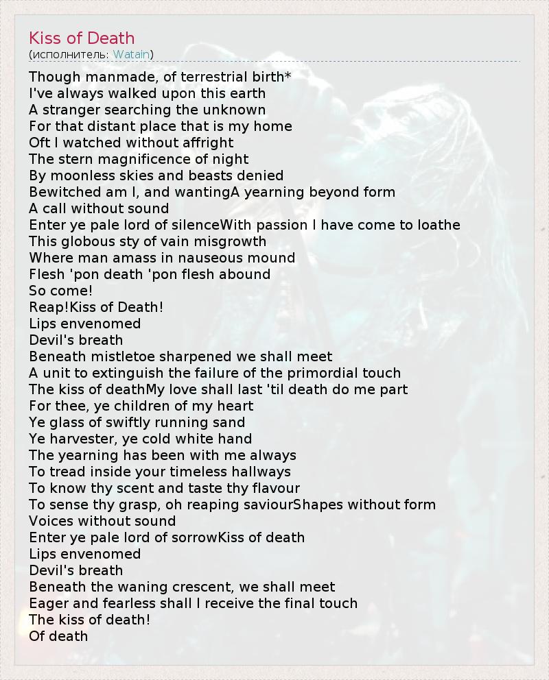А как ты думаешь, о чем песня "Kiss of Death" ?