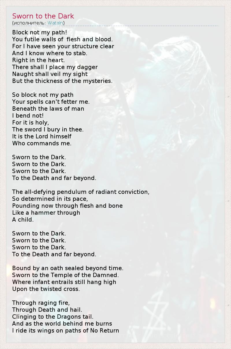 А как ты думаешь, о чем песня "Sworn to the Dark" ?
