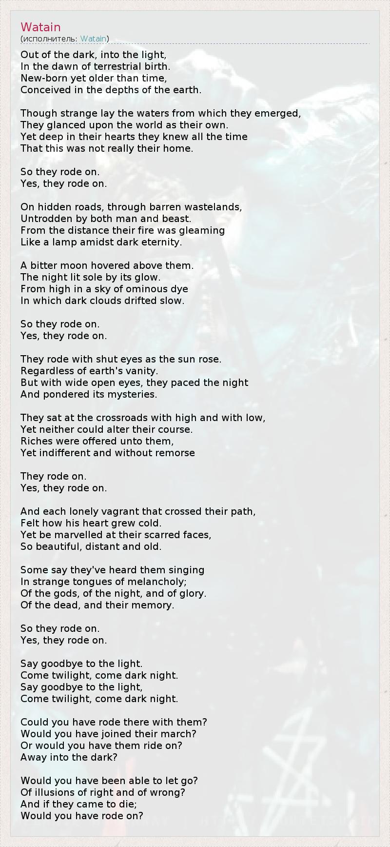 Это интересно:Шведская группа «Watain», позаимствовавшая свое название из песни «Von», начала свою сатанинскую деятельность в 1998 году (Уппсала, Швеция). Основали новую единицу бывшие участники «Bloodsoil» Эрик Даниэльссон (бас, вокал) и Си Блом (гитара), объединившиеся с ударником Ки Джонссоном и гитаристом Пелле Форсбергом.Первое же демо, «Go Fuck Your Jewish God», включавшее... продолжение