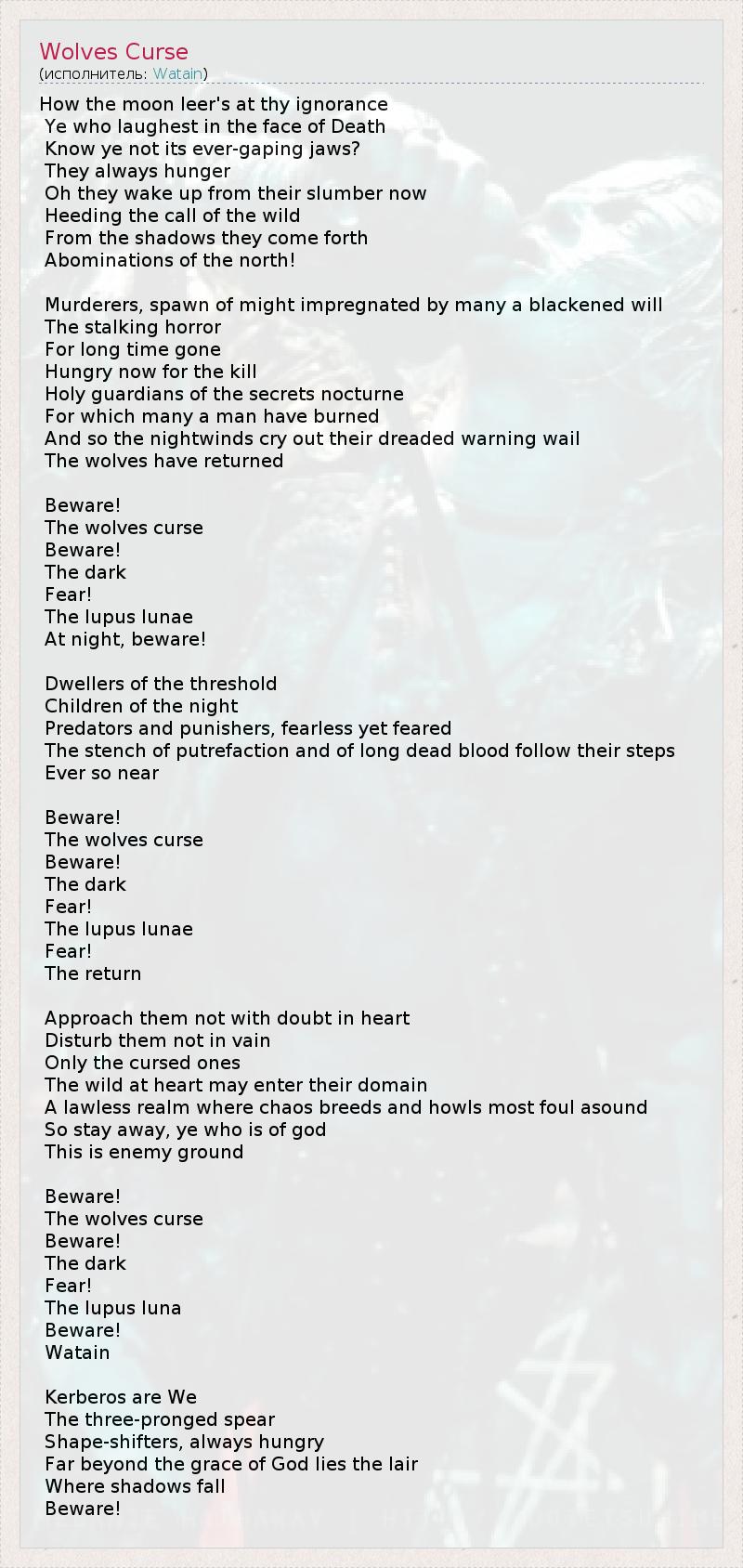 А как ты думаешь, о чем песня "Wolves Curse" ?