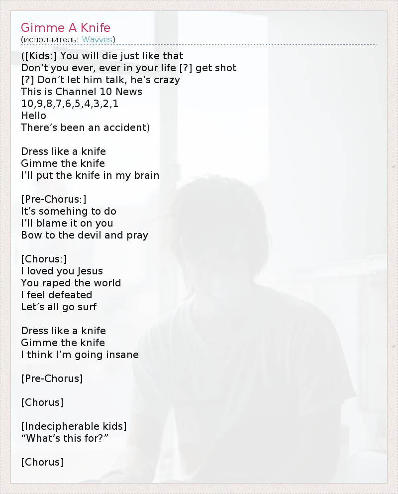 А как ты думаешь, о чем песня "Gimme A Knife" ?