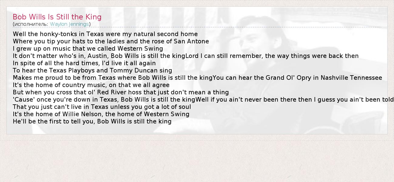 ГлавнаяИсполнителиWaylon JenningsBob Wills Is Still the King