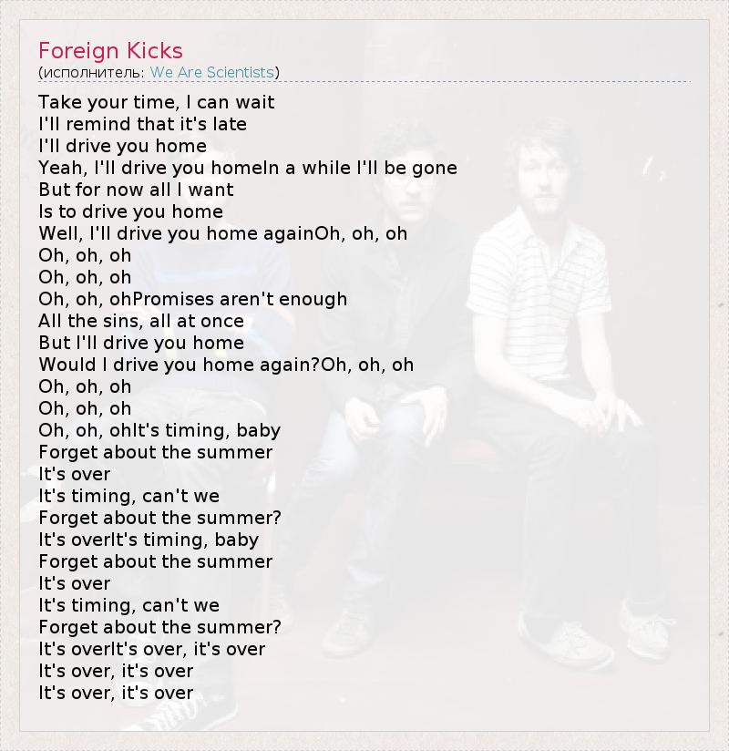 А как ты думаешь, о чем песня "Foreign Kicks" ?