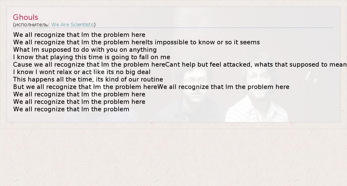 Это интересно:We Are Scientists - американская рок-группа, участниками которой являются Кит Мюррей (англ. Keith Murray, гитара, вокал), Крис Кейн (англ. Chris Cain, бас-гитара, бэк-вокал) и Майкл Таппер (англ. Michael Tapper, барабаны, бэк-вокал). Они начали играть в 2000 году. По их словам, они пишут "рок-музыку, иногда эпическую, зачастую громкую, вроде... продолжение