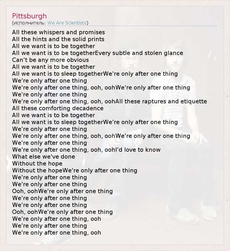 А как ты думаешь, о чем песня "Pittsburgh" ?