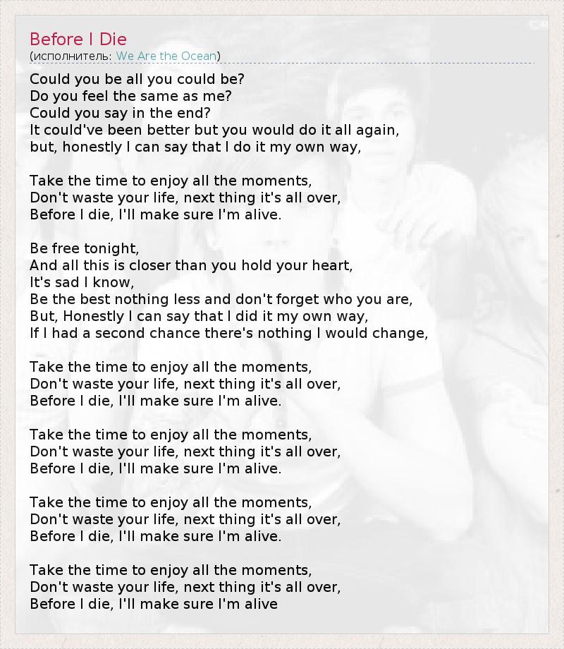 А как ты думаешь, о чем песня "Before I Die" ?