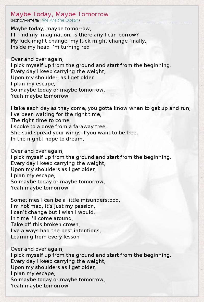 А как ты думаешь, о чем песня "Maybe Today, Maybe Tomorrow" ?