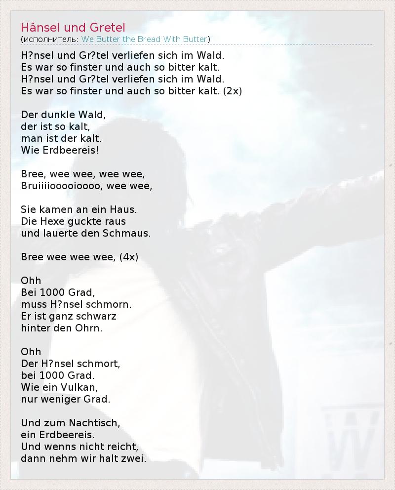А как ты думаешь, о чем песня "Hänsel und Gretel" ?
