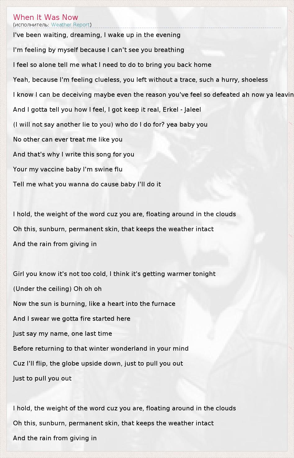 А как ты думаешь, о чем песня "When It Was Now" ?