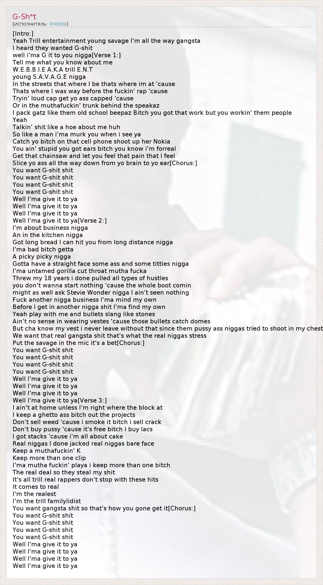 А как ты думаешь, о чем песня "G-Sh*t" ?