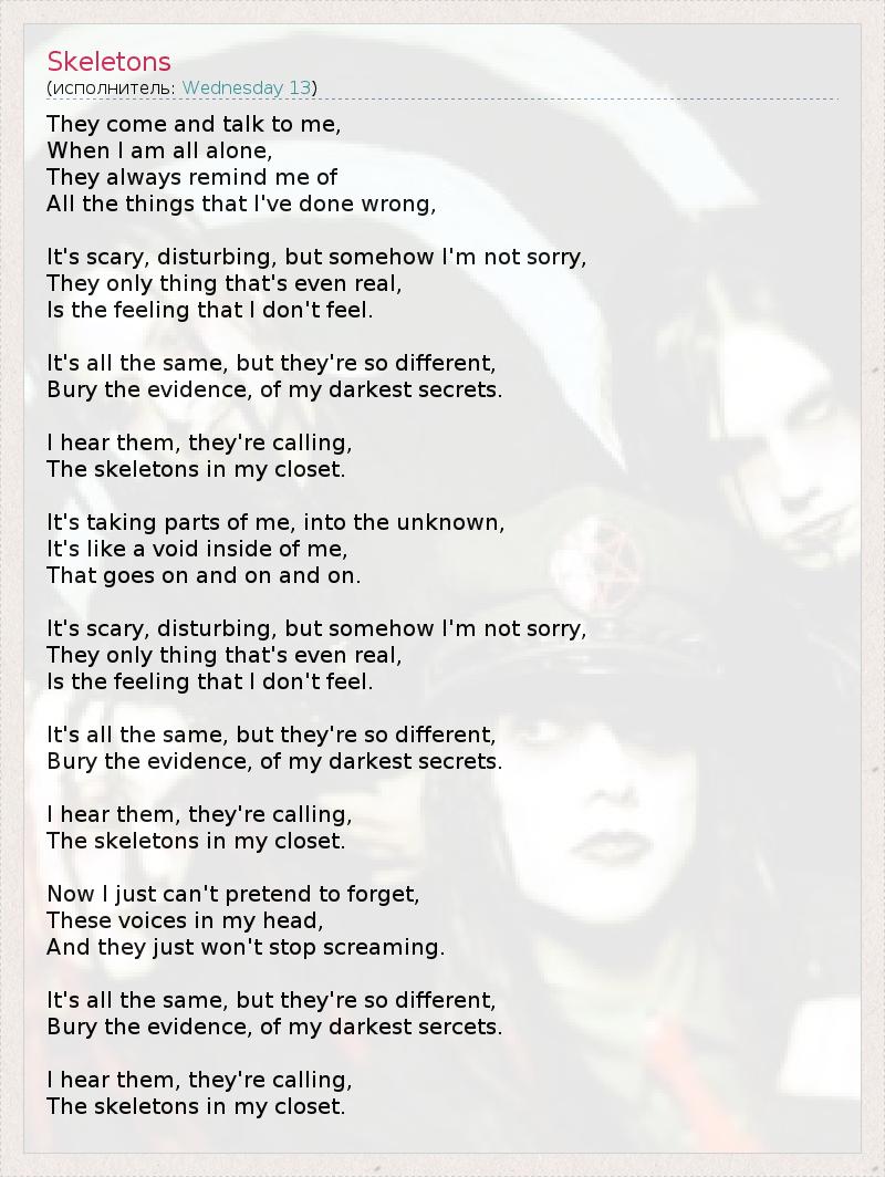 А как ты думаешь, о чем песня "Skeletons" ?
