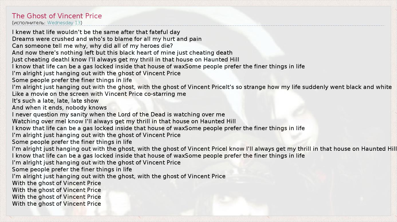ГлавнаяИсполнителиWednesday 13The Ghost of Vincent Price