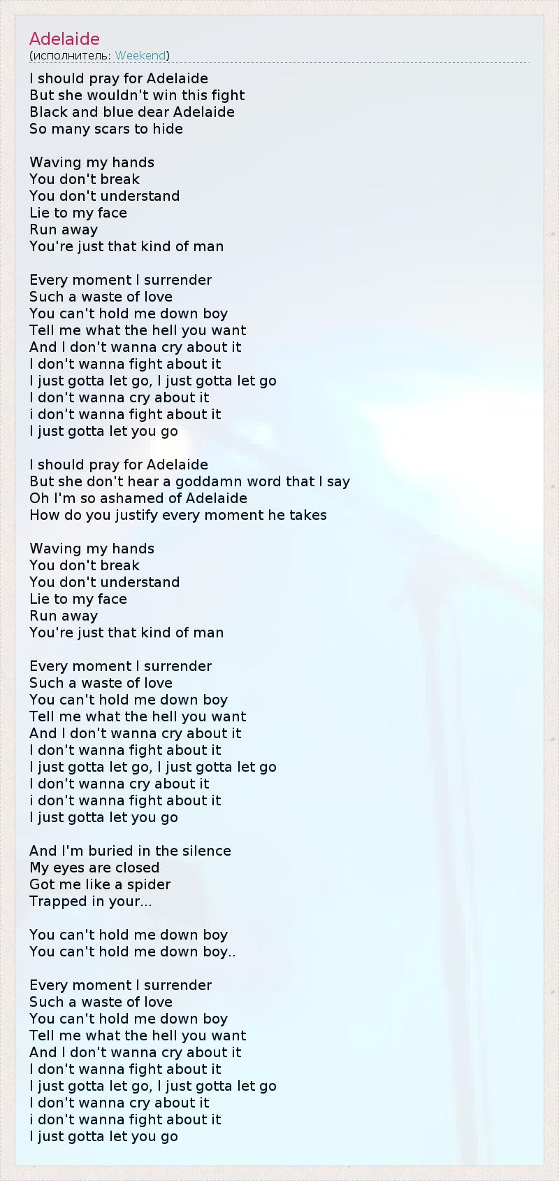 Ты вся в кровоподтёках, дорогая Аделаида,