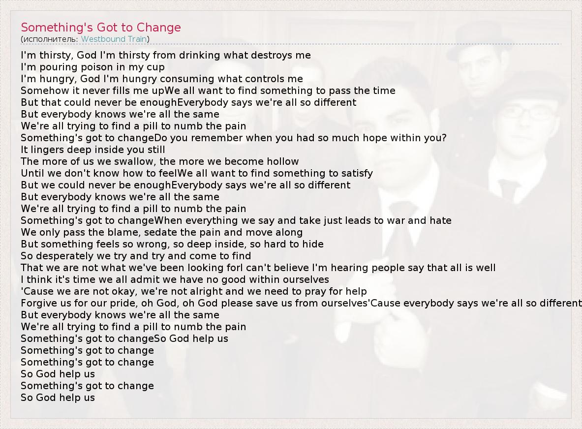 А как ты думаешь, о чем песня "Something's Got to Change" ?