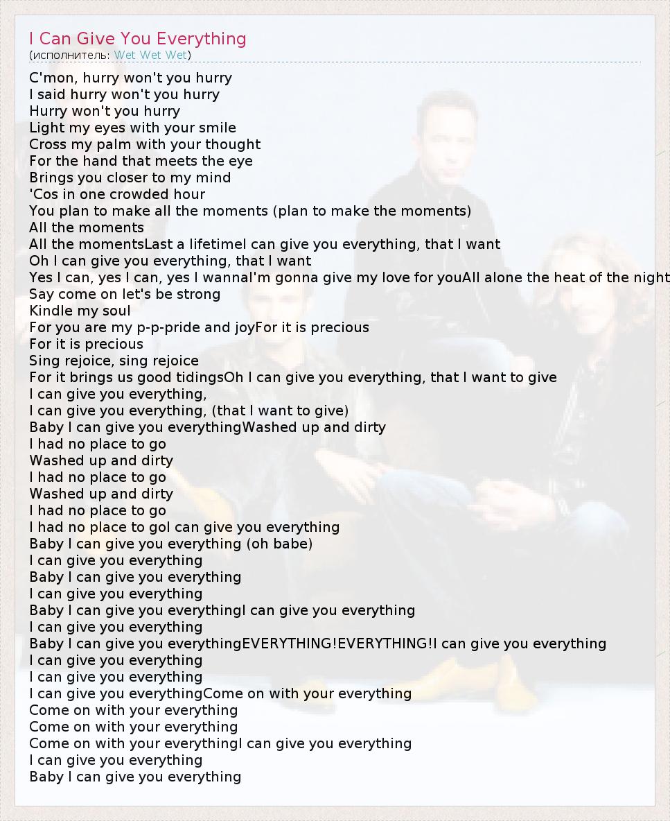А как ты думаешь, о чем песня "I Can Give You Everything" ?