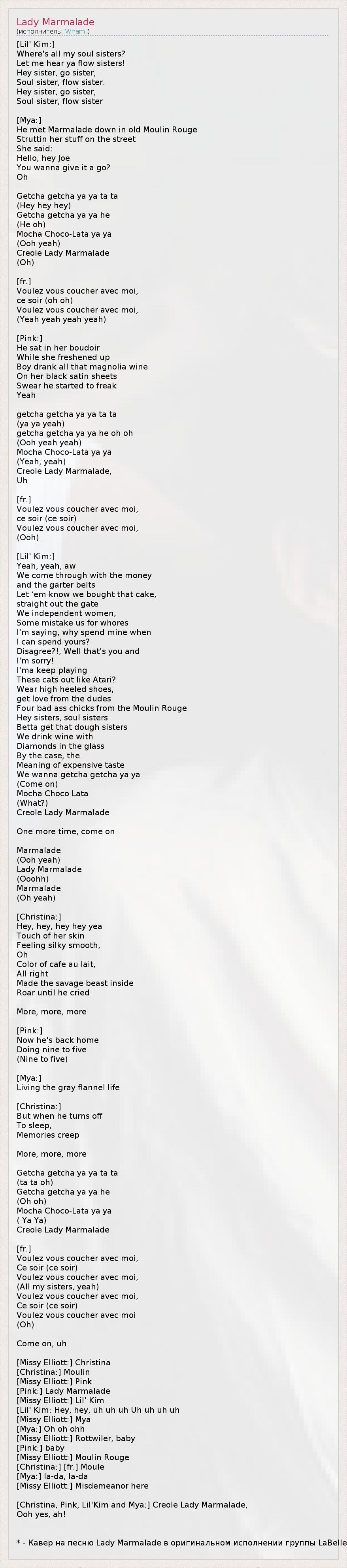 А как ты думаешь, о чем песня "Lady Marmalade" ?