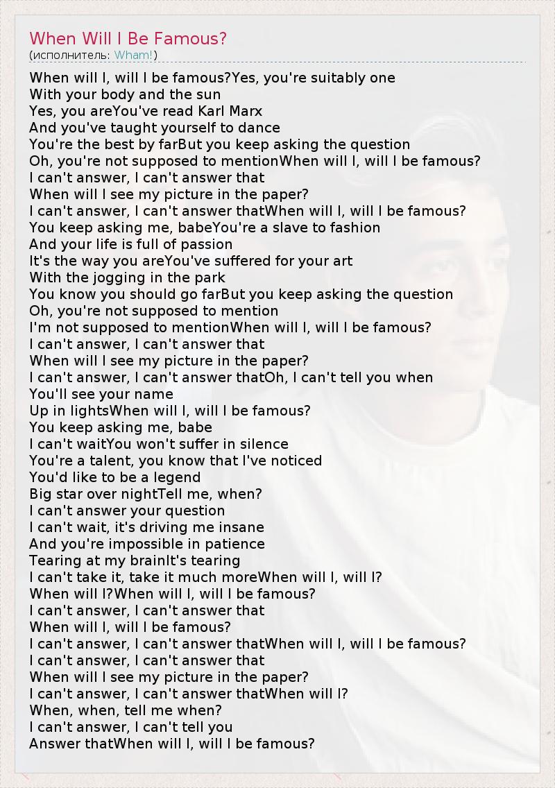 А как ты думаешь, о чем песня "When Will I Be Famous?" ?