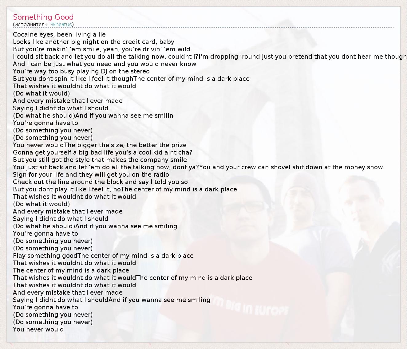 Это интересно:Компактность и ёмкость панка, гранжевые гитары, эффектные припевы, ироничные тексты и кипучая энергия молодости - такая вот экибана родилась в конце 90-х в нью-йоркском Лонг-Айленде. Самостоятельные и целеустремленные, Wheatus играют музыку, которая звучит актуально, увлекательно и жизнеутверждающе. И с пути своего сворачивать не собираются.Во главе этой дисциплинированной структуры... продолжение