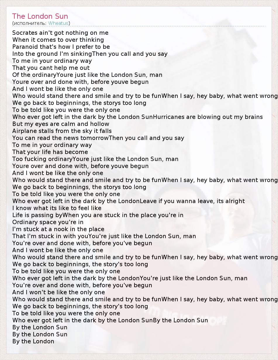 Who ever got left in the dark by the LondonYou're just like the London Sun, man