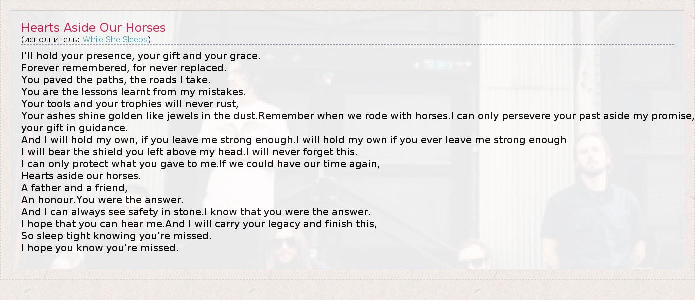 А как ты думаешь, о чем песня "Hearts Aside Our Horses" ?