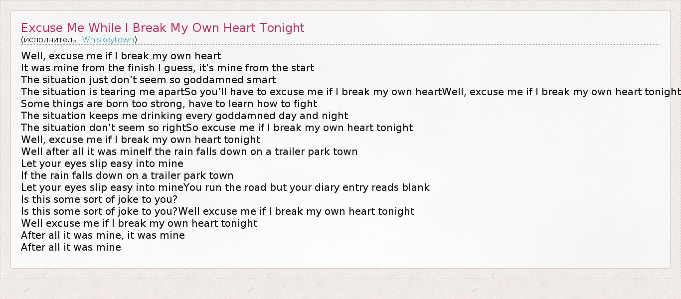 Well excuse me if I break my own heart tonight