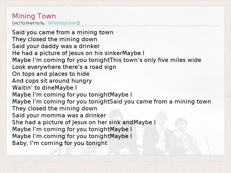 Maybe I'm coming for you tonightSaid you came from a mining town