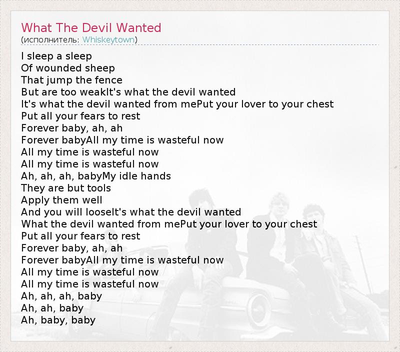 А как ты думаешь, о чем песня "What The Devil Wanted" ?