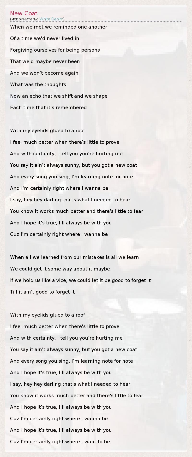 А как ты думаешь, о чем песня "New Coat" ?