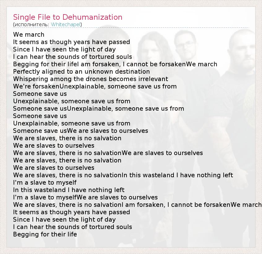 А как ты думаешь, о чем песня "Single File to Dehumanization" ?