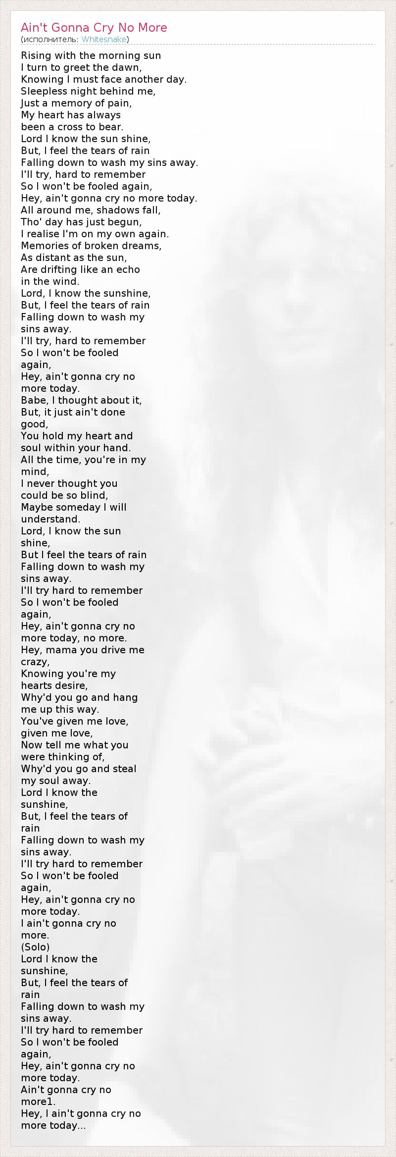 ГлавнаяИсполнителиWhitesnakeAin't Gonna Cry No More