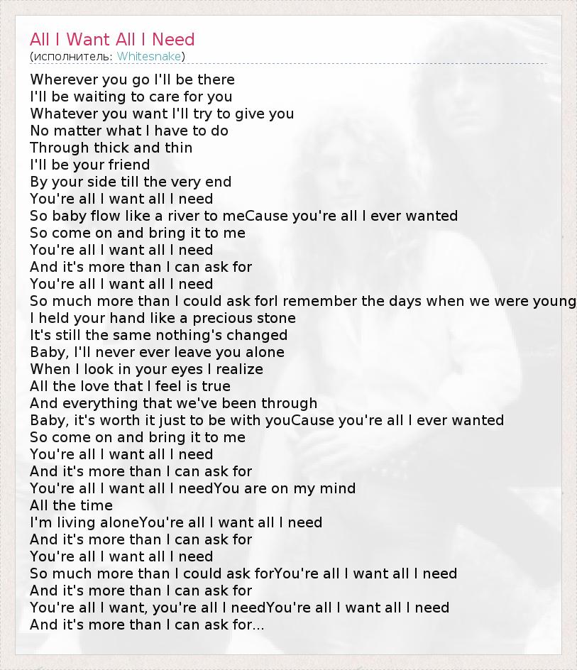 А как ты думаешь, о чем песня "All I Want All I Need" ?