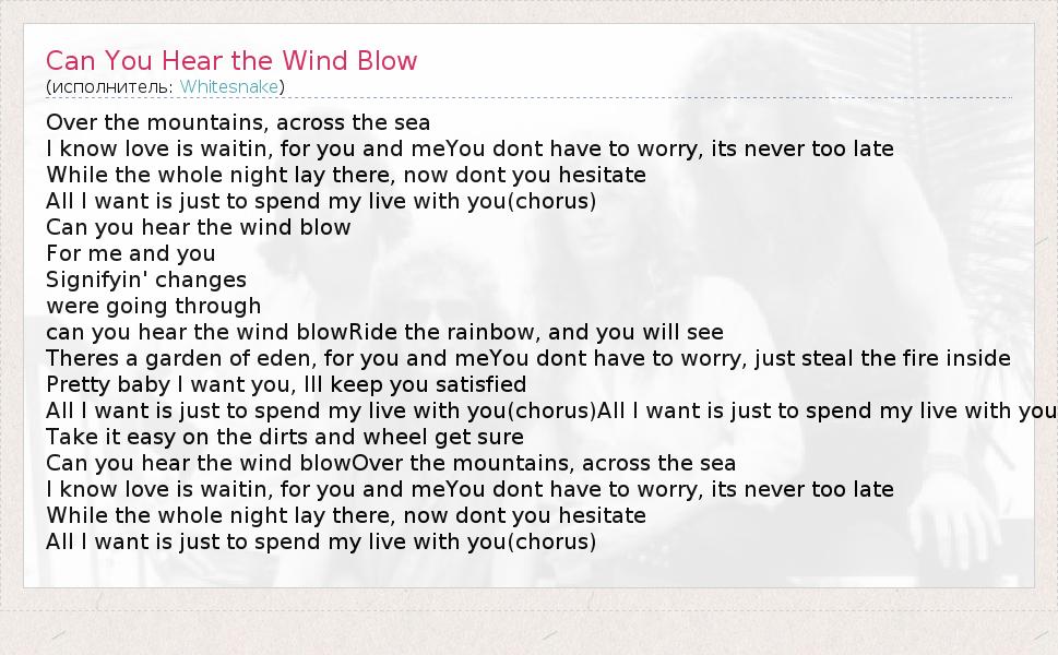 ГлавнаяИсполнителиWhitesnakeCan You Hear the Wind Blow