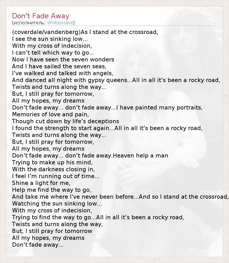 А как ты думаешь, о чем песня "Don't Fade Away" ?