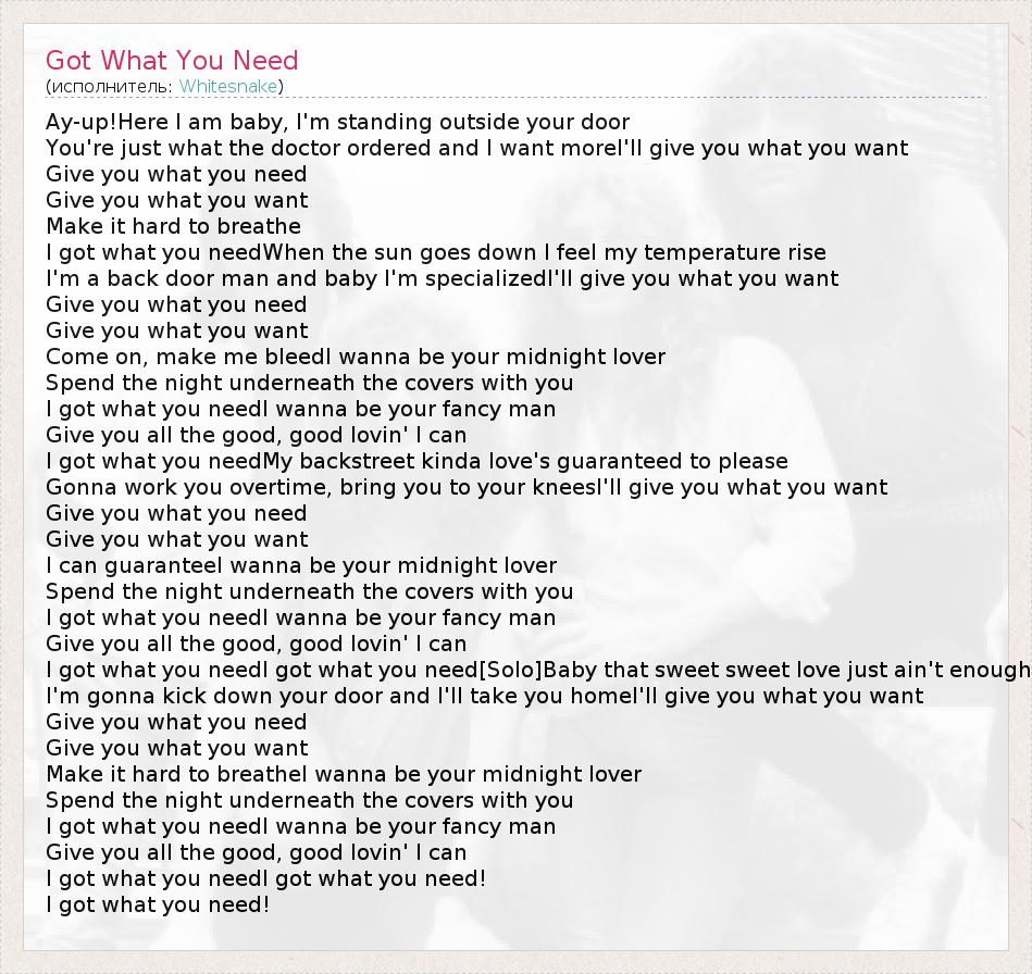 А как ты думаешь, о чем песня "Got What You Need" ?
