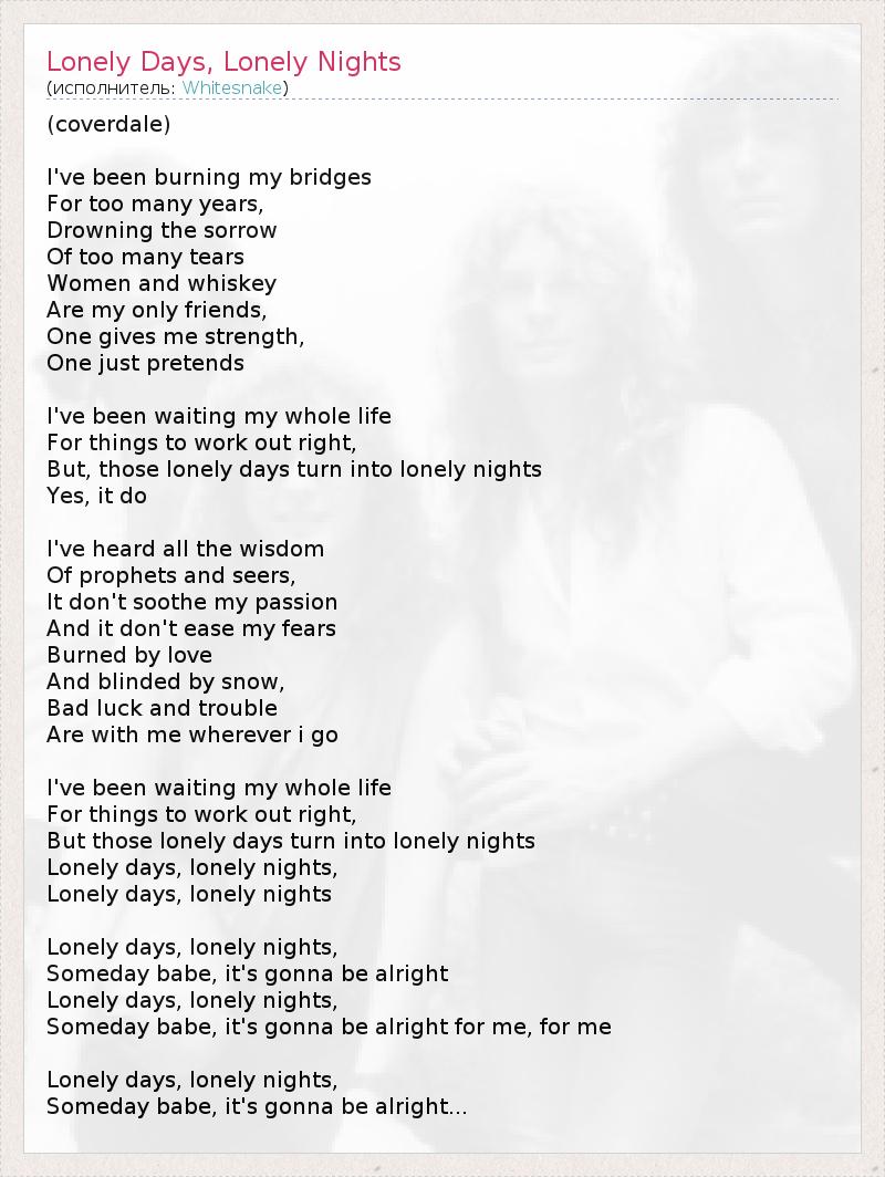 А как ты думаешь, о чем песня "Lonely Days, Lonely Nights" ?