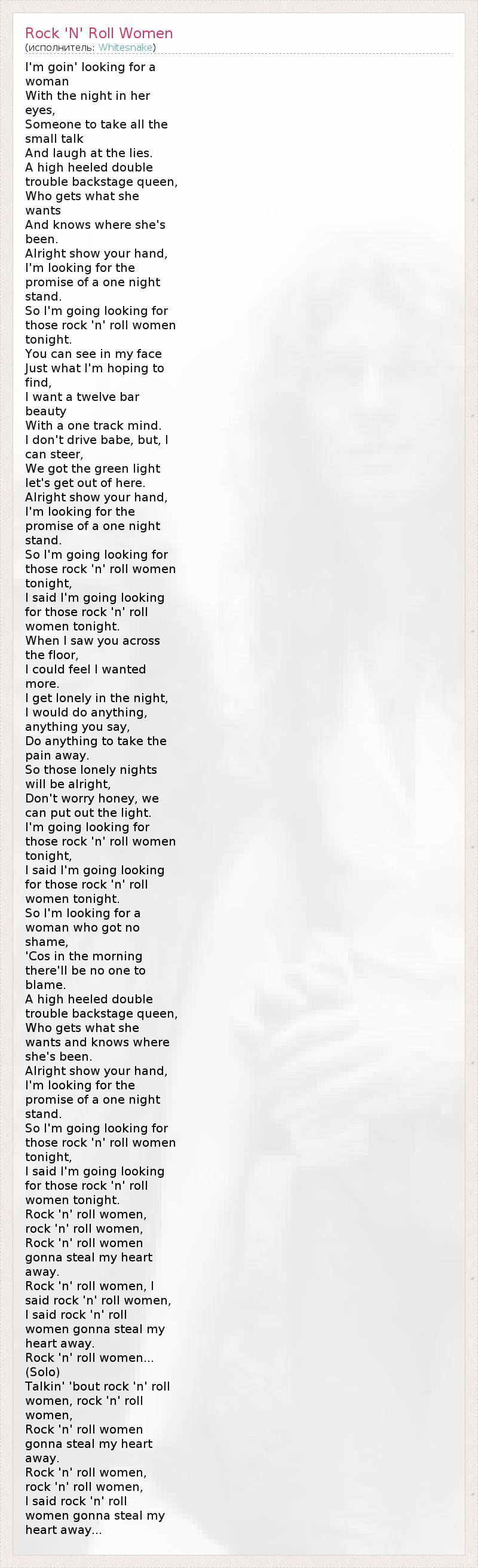 А как ты думаешь, о чем песня "Rock 'N' Roll Women" ?