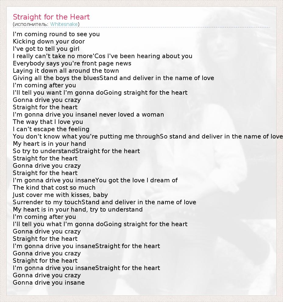 А как ты думаешь, о чем песня "Straight for the Heart" ?