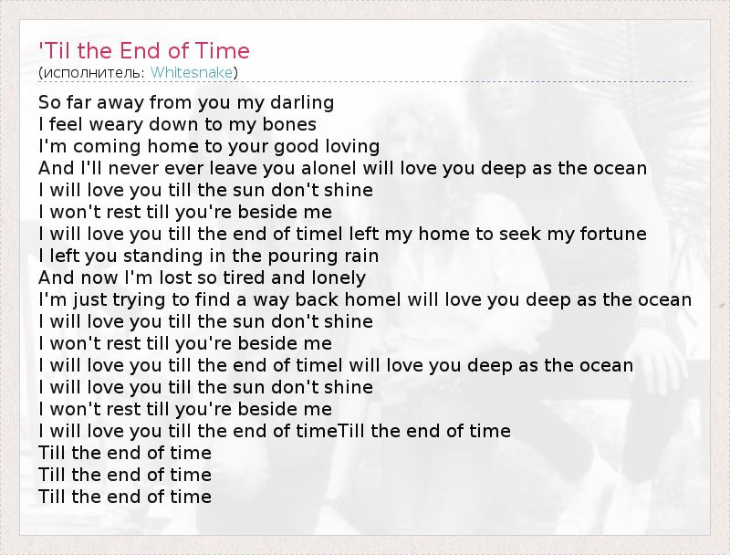 А как ты думаешь, о чем песня "'Til the End of Time" ?
