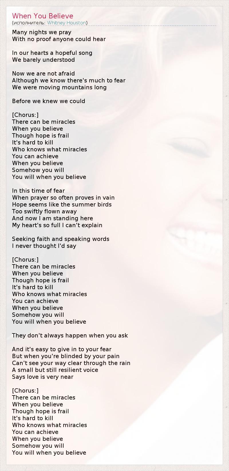 Это интересно:Уитни Хьюстон - (англ. Whitney Elizabeth Houston 09.08.1963-11.02.2012, Ньюарк, Нью-Джерси, США) - американская певица, продюсер, актриса и бывшая фотомодель. Обладательница 6 премий «Грэмми», 15 наград «Billboard Music Awards», 21 награды «American Music Awards», 2 наград «Emmy», «BET Lifetime Achievement Award» и множества других премий и наград музыкальной индустрии. Мировой тираж её альбомов превышает 140 миллионов копий, а синглов 50 миллионов.... продолжение