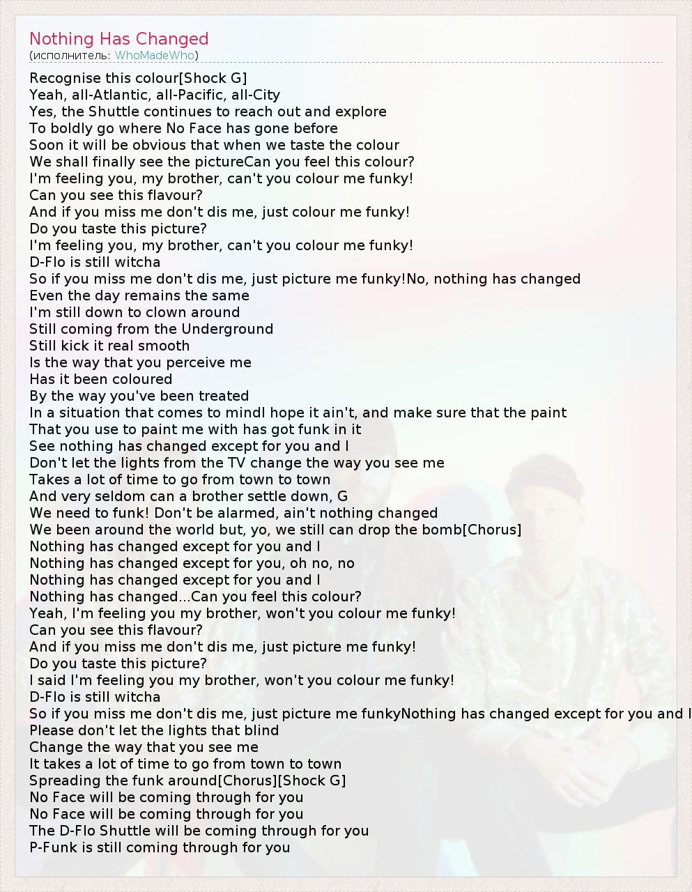 А как ты думаешь, о чем песня "Nothing Has Changed" ?