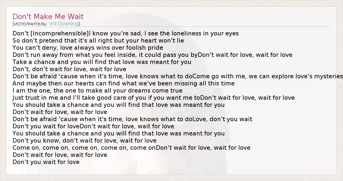 А как ты думаешь, о чем песня "Don't Make Me Wait" ?